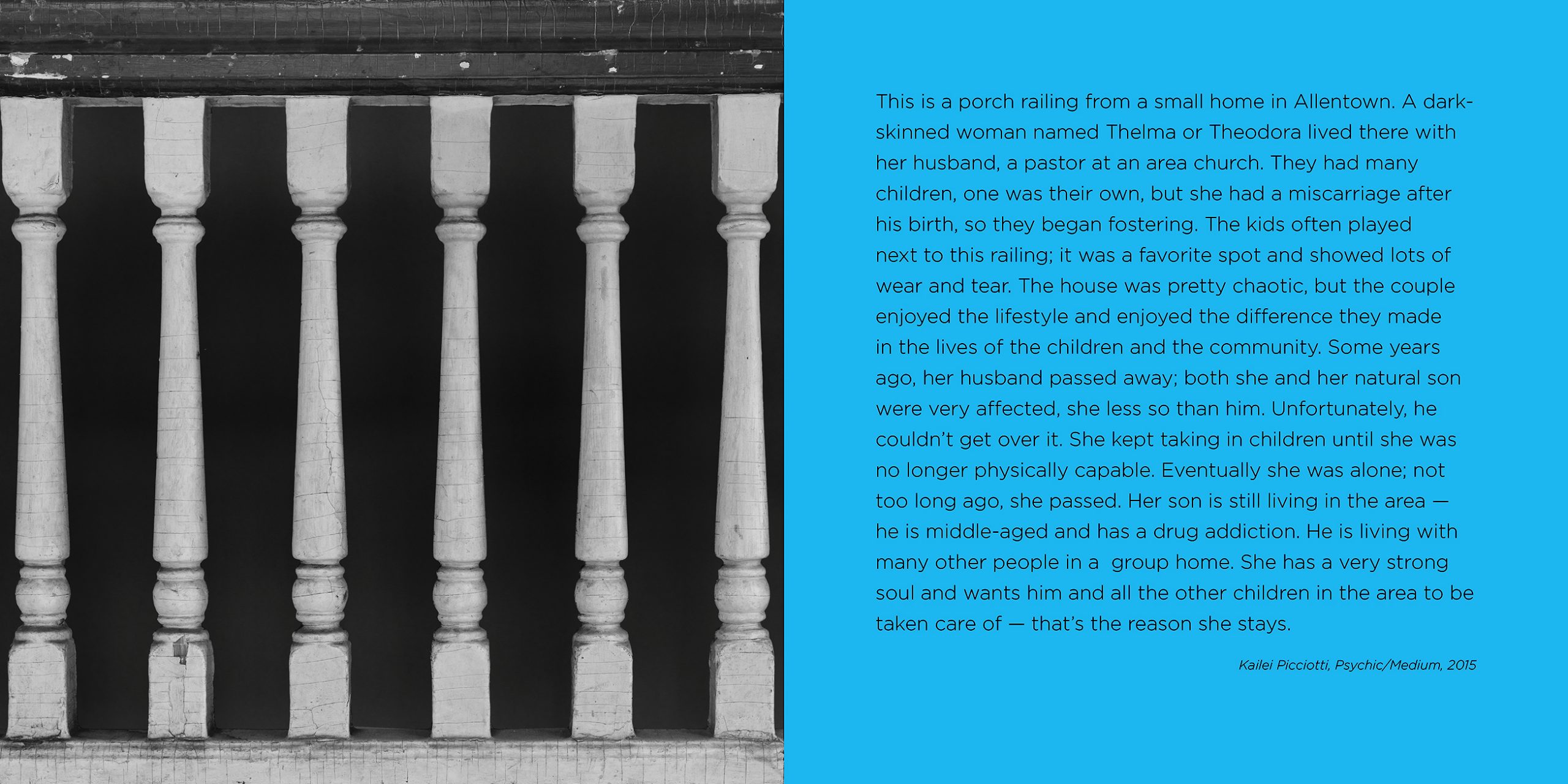 #003, Seeing Through Psychics: Balustrade, 2016, Pigment ink on archival hot press and RC luster papers, 30 x 60 inches (one available, wood frame). See a narrated video-overview of this project. No Longer Available