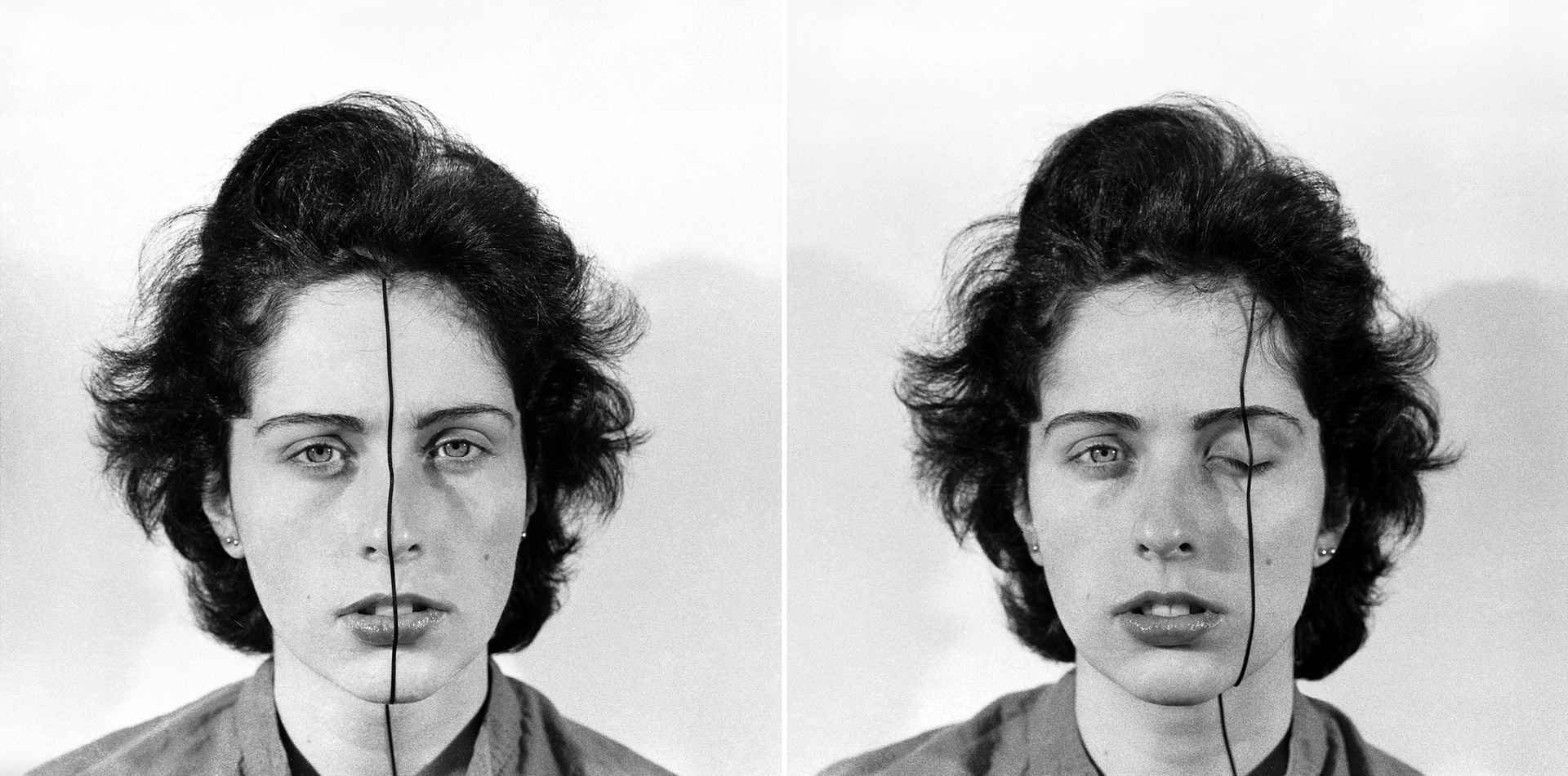 #028, Kiki As Symmetrical and Asymmetrical Compositions, 1974 & 2014, Two 35mm negatives that were lost in the 1970s, rediscovered in 2014, digitized, restored, and printed with pigment ink on archival luster paper, 18 x 23 inches (one available, wood frame). Item #119 relates to the origin of this piece.